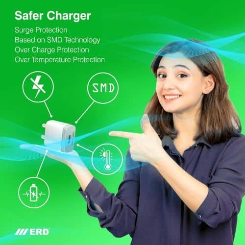 ERD TC-21 5V-2Amp Mobile Charger Adapter with Fast Charging Technology | Compatible with Headphones, MP3 Players, Tablets, Game Consoles, Cameras, Speakers, GPS, Cellular Phones, Smartwatches